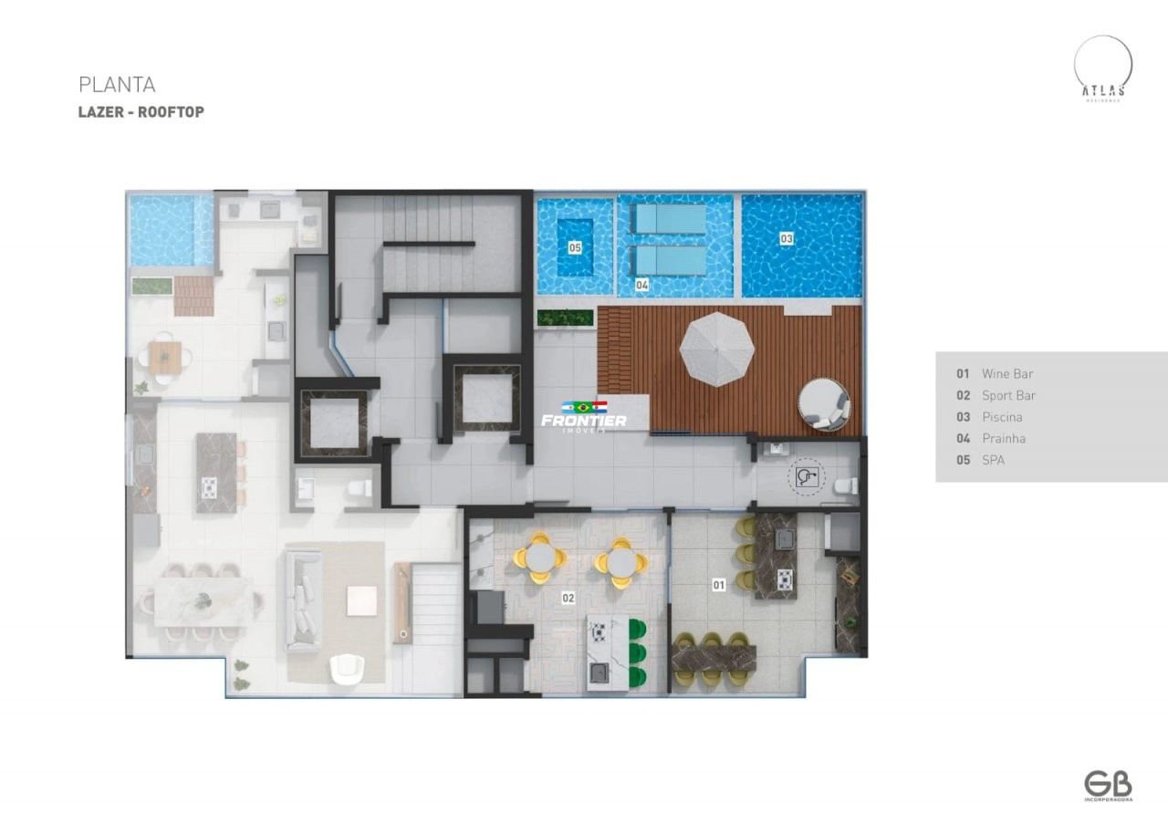 Já no 5º pavimento, encontram-se o salão de festas, brinquedoteca, game center, fire place, academia, gourmet externo, além das piscinas adulto e infantil e quadra de esportes.